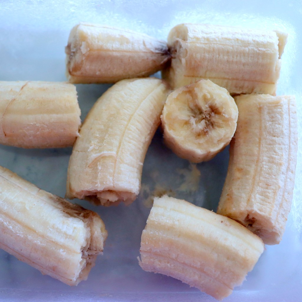 I recommend freezing two peeled bananas for a duration of 4 to 6 hours. This frosty touch lends a velvety consistency to the smoothie.