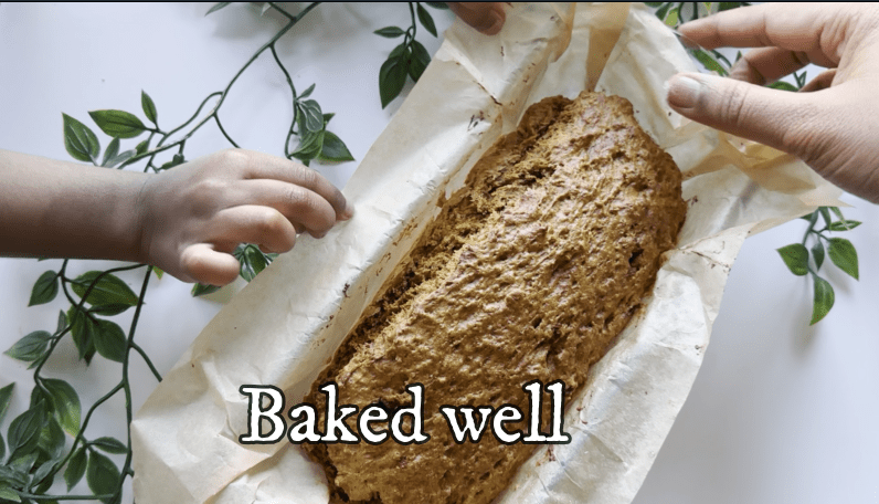 - Pour the batter into the prepared loaf pan, spreading it evenly. You can add 2-3 drops of oil for spreading the batter easily.