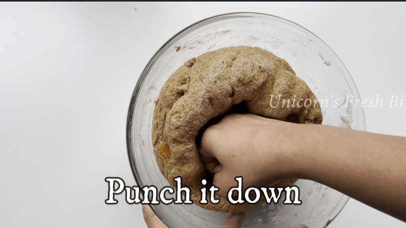 7.After the dough has risen, punch it down and divide it into equal-sized balls.