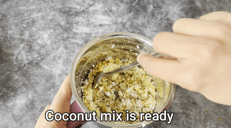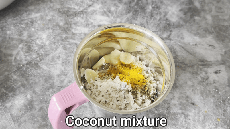 3.Grind the Coconut Mixture: In a blender, combine the grated coconut, garlic, and cumin seeds. Grind into a coarse mixture.